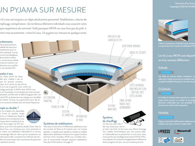 Profitez également des housses de protection certifiées Oeko-Tex standard 100, antiallergiques et faciles à nettoyer en machine. Le matelas à eau Akva Lyra est constitué de vinyl laminé de haute qualité et d’une housse de sécurité pour garantir votre confort de sommeil. Tous les matelas sont disponibles en version simple (Mono) ou double (Duo), avec des options de stabilisation (couches de fibres) pour une expérience de sommeil sur mesure. Les mousses Softside Q à coupe droite apportent un confort supplémentaire et une garantie de 10 ans pour les matelas en cas de micro-fissures.