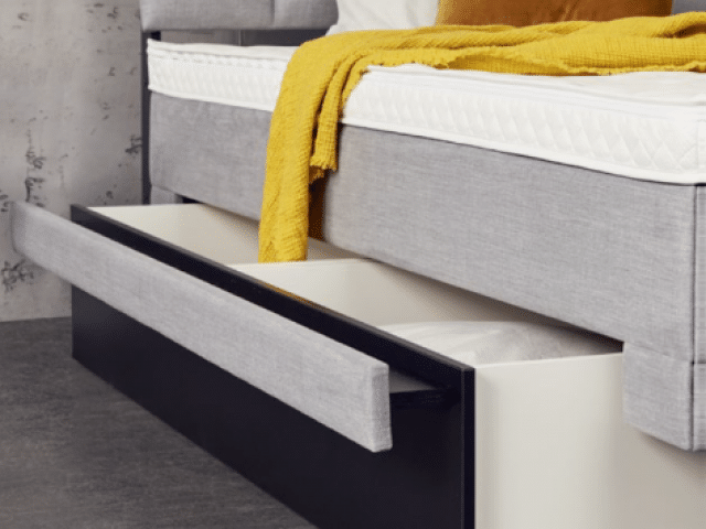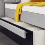Le lit Modulex Select est également disponible avec une solution de stockage spacieuse intégrée dans la base. Vous pouvez également combiner votre lit avec les socles Box et tiroirs (sur roulettes uniquement).