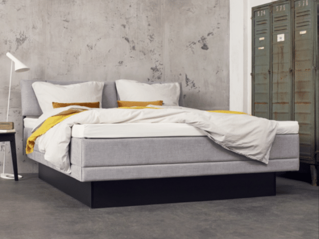 Le lit Modulex Select, version moderne du sommier à ressorts, offre le confort d'un matelas à eau avec un cadre large et une partie visible réduite. Personnalisez-le avec un tour de lit rembourré, un cadre décor ou plaqué selon vos préférences.