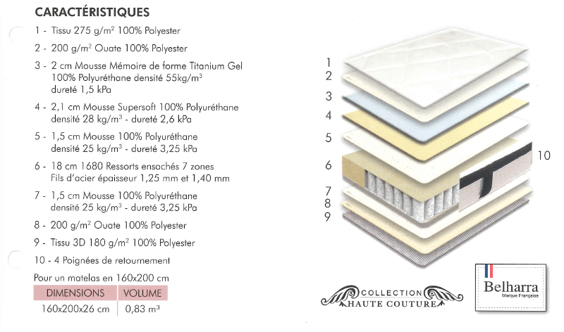 Noyau : 1680 ressorts ensachés 7 zones
