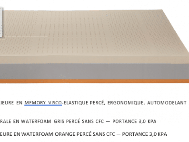 Rembourrage: Côté A: 2 cm Extra Soft Foam, extrêmement moelleux + 2 cm Memo Fresh, ergonomique, automodelant, thermorégulateur et antibactérien.