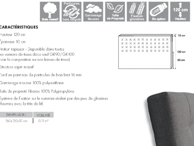 • Système de fixation sur le sommier réalisé par des jeux de glissières (fournies avec la tête de lit)